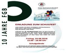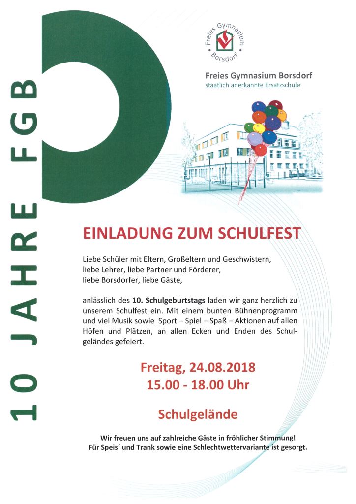 Anlässlich des 10. Schulgeburtstags unseres Freien Gymnasiums Borsdorf (FGB) sind verschiedene Veranstaltungen geplant: