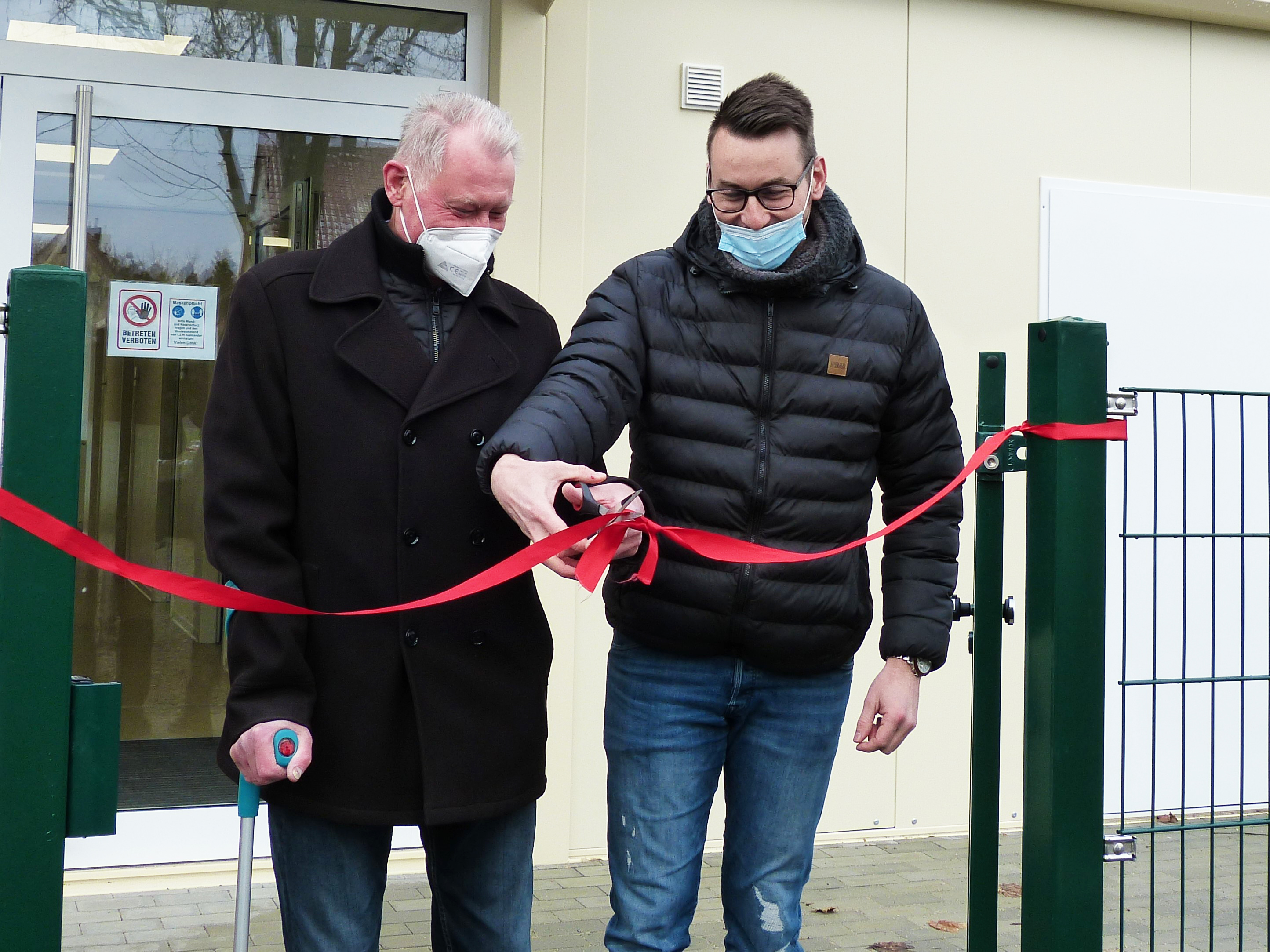 Nach über drei Jahren Planungs- und Bauzeit hat am 22. März 2021 unsere Kinderkrippe der „Belgershainer Schlossgeister“ mit 18 Plätzen ihre Türen in Belgershain geöffnet. Am Mittwoch, den 07. April 2021, kappten Bürgermeister Thomas Hagenow und Kitaleiter Martin Kretzschmar symbolisch das rote Eröffnungsband. Sobald es die Corona-Maßnahmen ermöglichen, wird die feierliche Eröffnung mit der Gemeinde, den umliegenden Kooperationspartner:innen und allen am Bau Beteiligten nachgeholt. Der Tag der offenen Tür, zu dem Martin Kretzschmar die ganze Nachbarschaft einladen möchte, um die Neuerungen in allen Häusern zu präsentieren, wird jedoch noch etwas warten müssen.