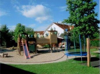 Im 2000 m² großen Garten gibt es vielfältige Spielmöglichkeiten für jede Altersgruppe: