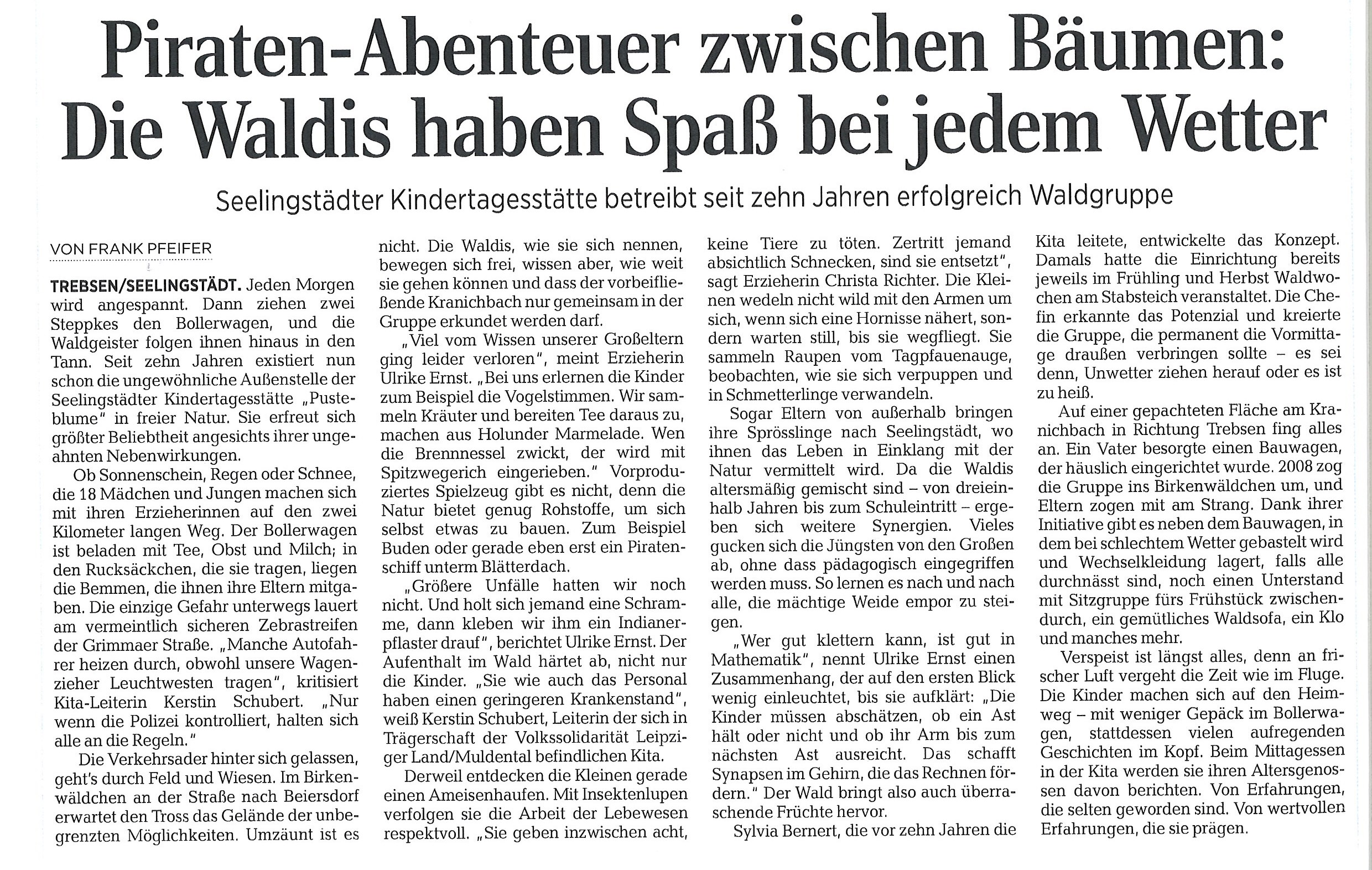 LVZ-Artikel: "Piraten-Abenteuer zwischen Bäumen: Die Waldis haben Spaß bei jedem Wetter"
