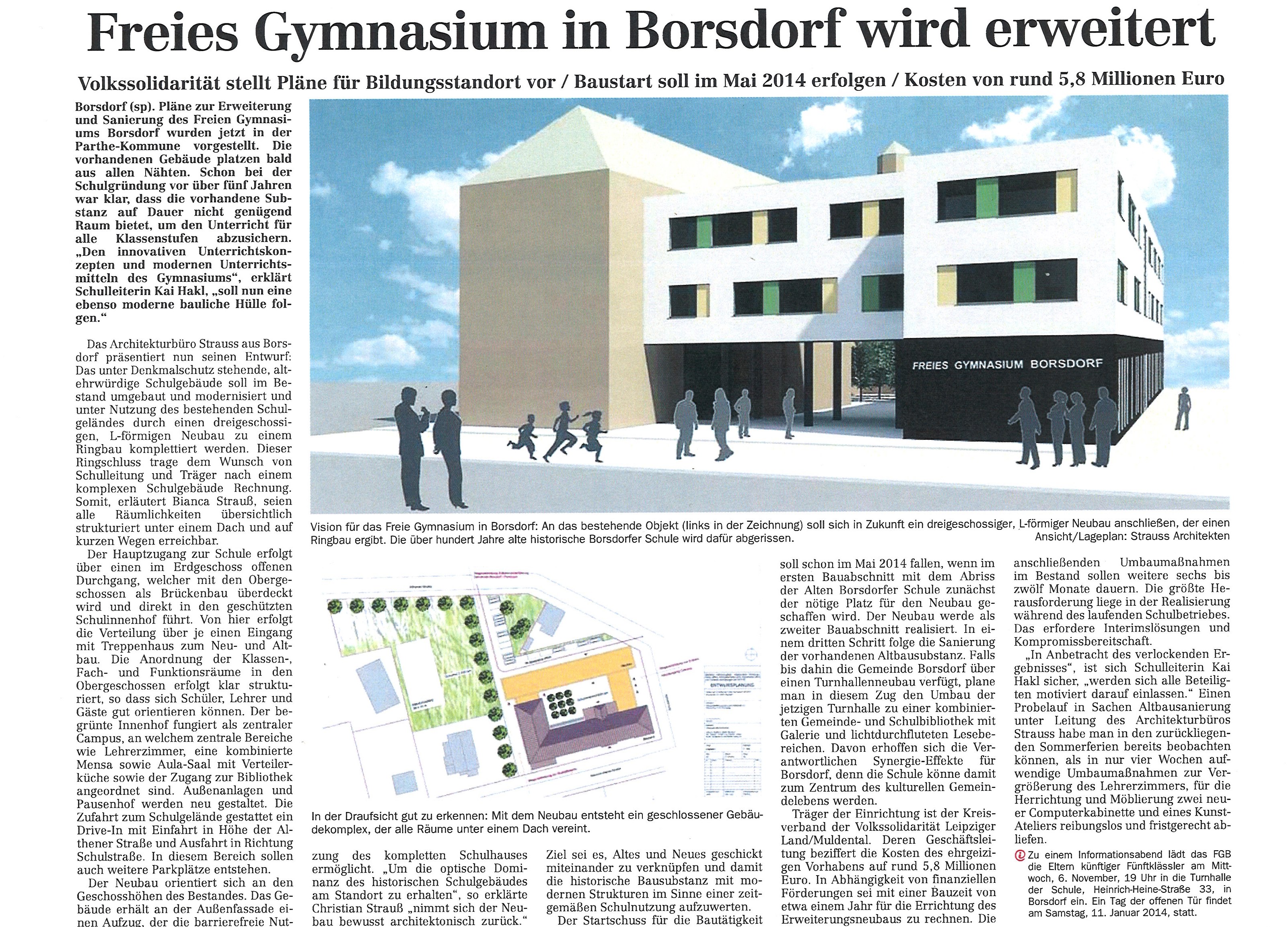 LVZ-Artikel "Freies Gymnasium in Borsdorf wird erweitert"