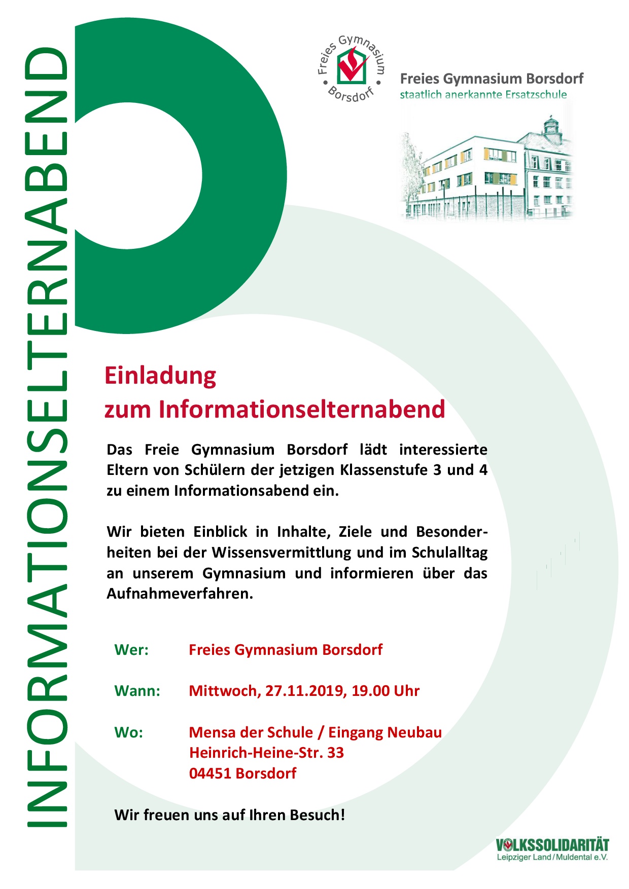 Einladung zum Informationselternabend und zum Tag der offenen Tür