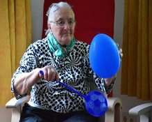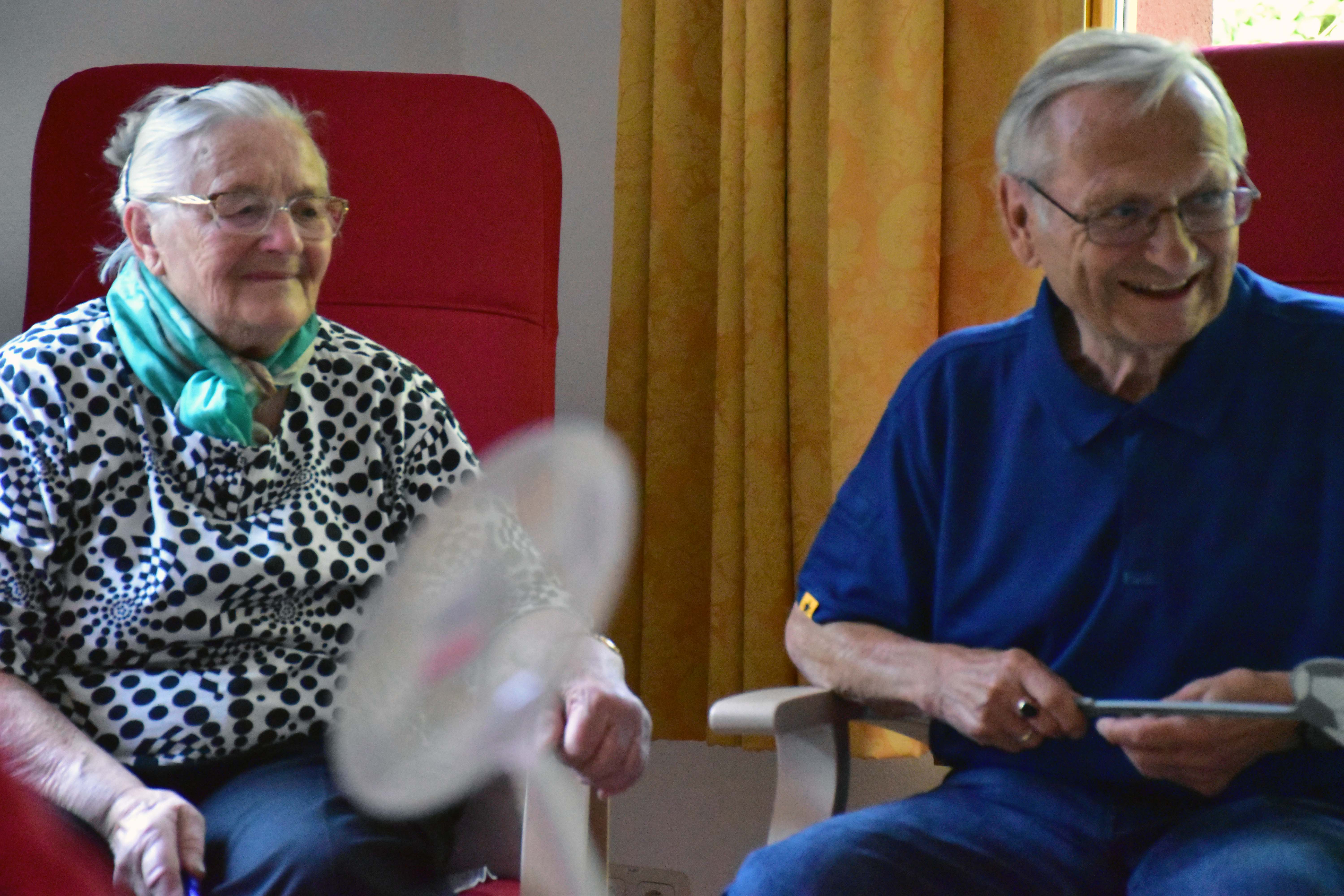 Es ist Dienstag, 10 Uhr und in unserer Tagespflege Schkeuditz „An der Bergbreite“ herrscht eine fröhliche Stimmung. Bunte Fliegenklatschen schwingen durch die Luft und versuchen, einen blauen Luftballon schwebend zu halten. Es wird gelacht und sich gegenseitig angefeuert, auch wenn der Ballon einmal zu Boden fällt. „Jeden Tag machen wir kleine Bewegungsspiele mit unseren Tagesgästen“, erklärt Christiane Schau, unsere Pflegedienstleiterin der Einrichtung. „Das aktiviert den Körper und fördert das Denken und die Wahrnehmung.“ Sie kümmert sich montags bis freitags von 8 bis 16 Uhr zusammen mit einem festen Team um bis zu 24 pflegebedürftige Menschen. Damit alle gut umsorgt sind, steht unseren Gästen sowohl pflegerisches Personal zur Seite, als auch Betreuungskräfte.
