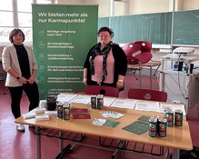 Jeannette Wallner, unsere Ausbildungskoordinatorin Pflege, und Fr. Winning-Kögler, die Leiterin unseres Altenpflegeheims in Grimma, betreuten den Stand und standen den vielen interessierten Jugendlichen sowie ihren Eltern Rede und Antwort. Sie gaben Einblicke in den Alltag und die Herausforderungen in der Pflegebranche und stellten unsere Ausbildung zur Pflegefachkraft vor.