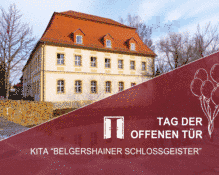 Die Kita "Belgershainer Schlossgeister" lädt herzlich ein, ihre Einrichtung mit Krippe, Kindergarten und Hort im Schloss Belgershain kennenzulernen. Bei Spiel, Spaß und Bewegung können die Großen und Kleinen die Räume beschnuppern und mit dem Team ins Gespräch kommen. Auch für das kulinarische Wohl ist gesorgt.