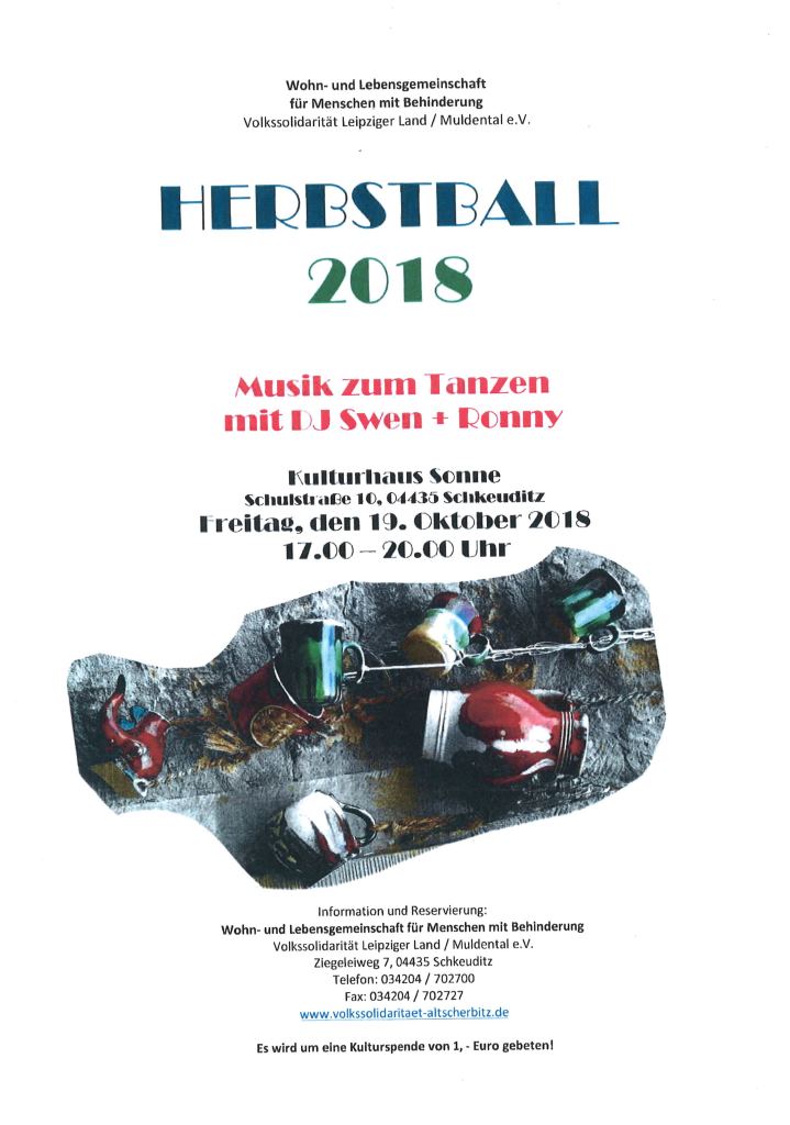Der traditionelle Herbstball unserer Wohn-und Lebensgemeinschaft für Menschen mit Behinderung in Schkeuditz zieht über 220 überregionalen Teilnehmer anderer Wohngemeinschaften nach Schkeuditz und ist bereits ausgebucht. Bei Interesse sind einzelne Anfragen möglich. Fühlen Sie sich also hiermit herzlich eingeladen und melden Sie sich direkt in unserer Einrichtung vor Ort an: > www.volkssolidaritaet-altscherbitz.de