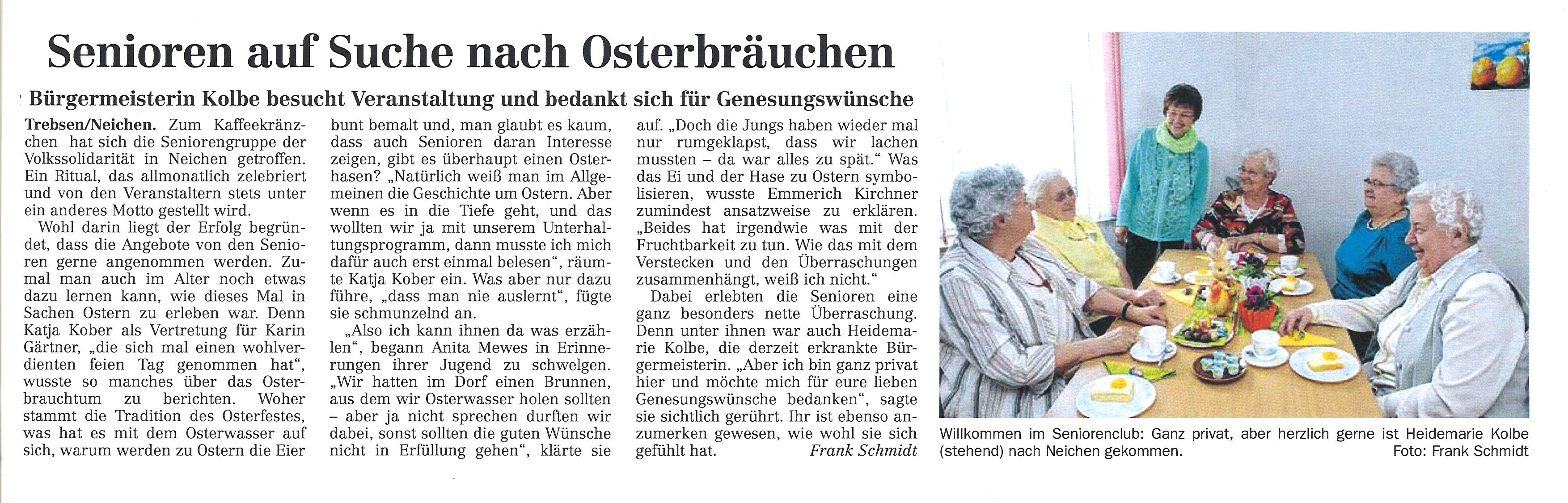 LVZ-Artikel "Senioren auf Suche nach Osterbräuchen"