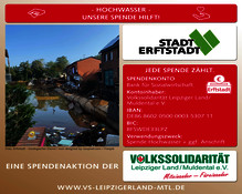 Wie sehr dringende und schnelle Hilfe nun nötig ist, wissen viele von uns selbst. Lassen Sie uns deshalb solidarisch Miteinander - Füreinander helfen und spenden Sie an das von uns eingerichtete Konto. Die gesammelten Spenden kommen zu 100% den Menschen in Erftstadt zugute. Über den Spendenstand und die Übergabe informieren wir auf unserer Homepage.