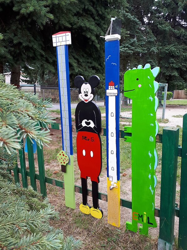 Seit August 2021 verschönert den Eingangsbereich unserer Kita ein Zaun, den die Kinder mit ihren Eltern mitgestaltet haben. Nun zieren ganz besondere und kreative Motive die einzelnen Zaunlatten. Die sensationellen Kunstwerke, die hier entstanden sind, machen die Kinder besonders stolz immer wenn sie am Zaun entlang gehen und ihre eigene Latte entdecken.