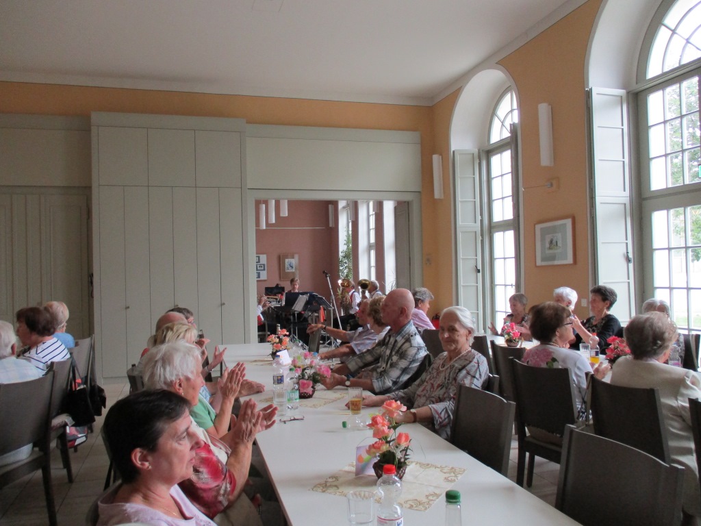 Am Donnerstag, den 15.08.2019 fand in der Orangerie Gaschwitz eine musikalische Veranstaltung für die Seniorinnen und Senioren der Begegnungsstätte mit den Altranstädter Musikanten unter der Leitung von Joachim Gall statt. Die Veranstaltung begann mit einem gemütlichen Kaffee trinken. Danach stellte Joachim Gall seine musikalischen Begleiter vor und begrüßte die ca. 35 Seniorinnen und Senioren zu einer musikalischen Reise von böhmischer bis mährischer Blasmusik bis hin zu stimmungsvoller Marschmusik. Zwischen den instrumentalen Einlagen unterhielten die Musiker die Seniorinnen und Senioren mit lustigen Anekdoten. Mit großem Applaus bedankten sich die Seniorinnen und Senioren für eine niveauvolle und wunderschön gelungene Veranstaltung.