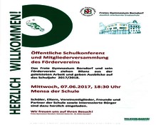 Öffentliche Schulkonferenz und Mitgliederversammlung des Fördervereins am 07.06.2017, 18:30 Uhr