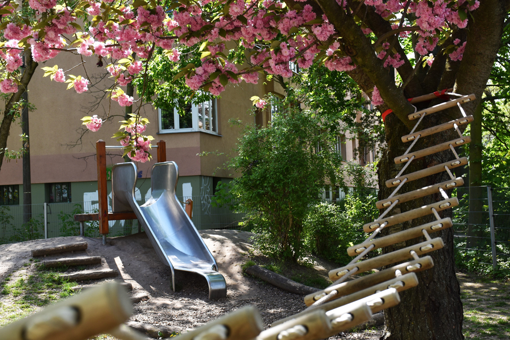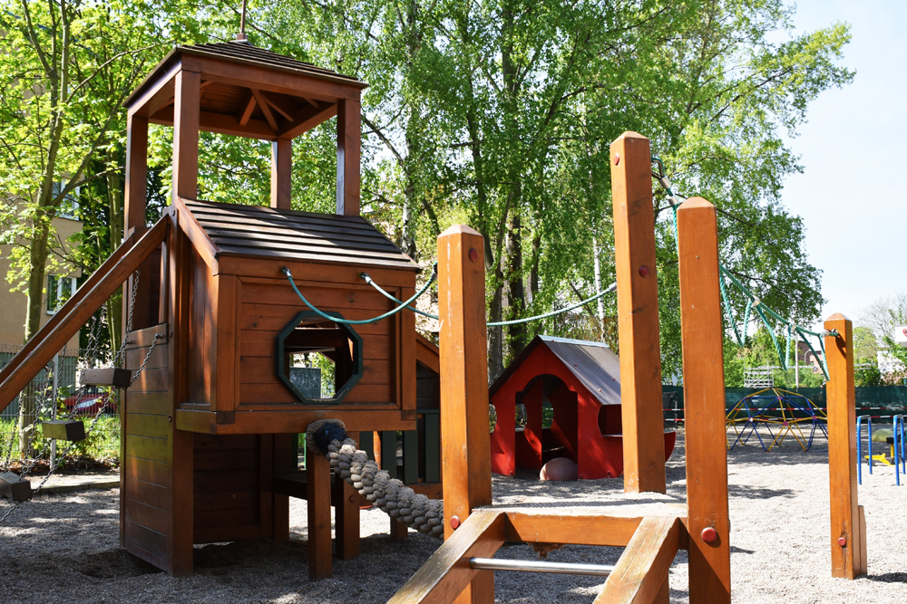 Die Kindertagesstätte verfügt über ein schönes, weitläufiges Außengelände mit vielen Bäumen, einen Märchenwald-Bereich und verschiedenen Spielmöglichkeiten. Unsere Einrichtung befindet sich im Neubaugebiet Gohlis-Nord mit guter Verkehrsanbindung zu Straßenbahn 4 und Buslinie 80.