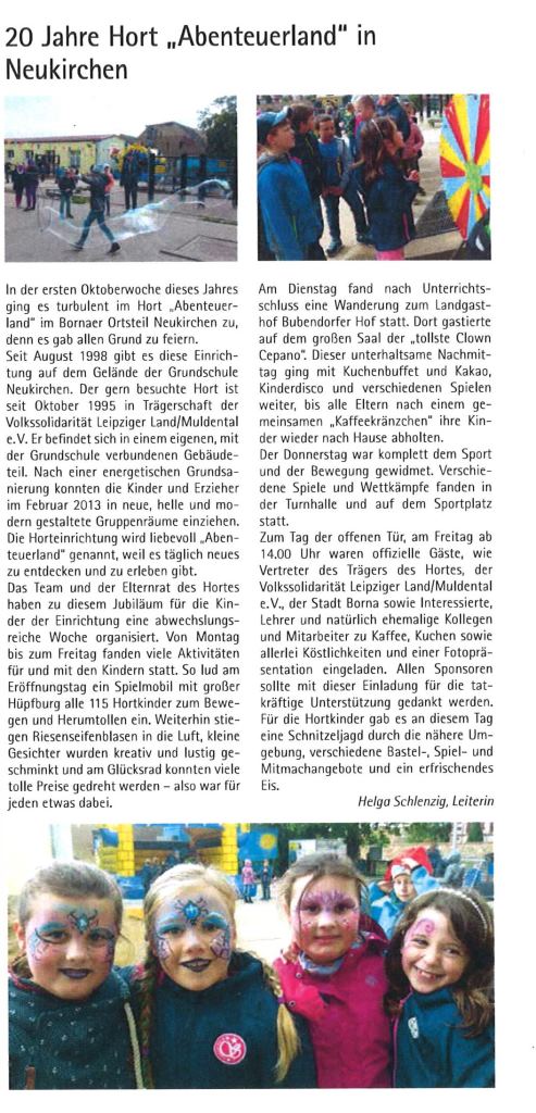 20 Jahre Hort "Abenteuerland" Borna/ OT Neukirchen