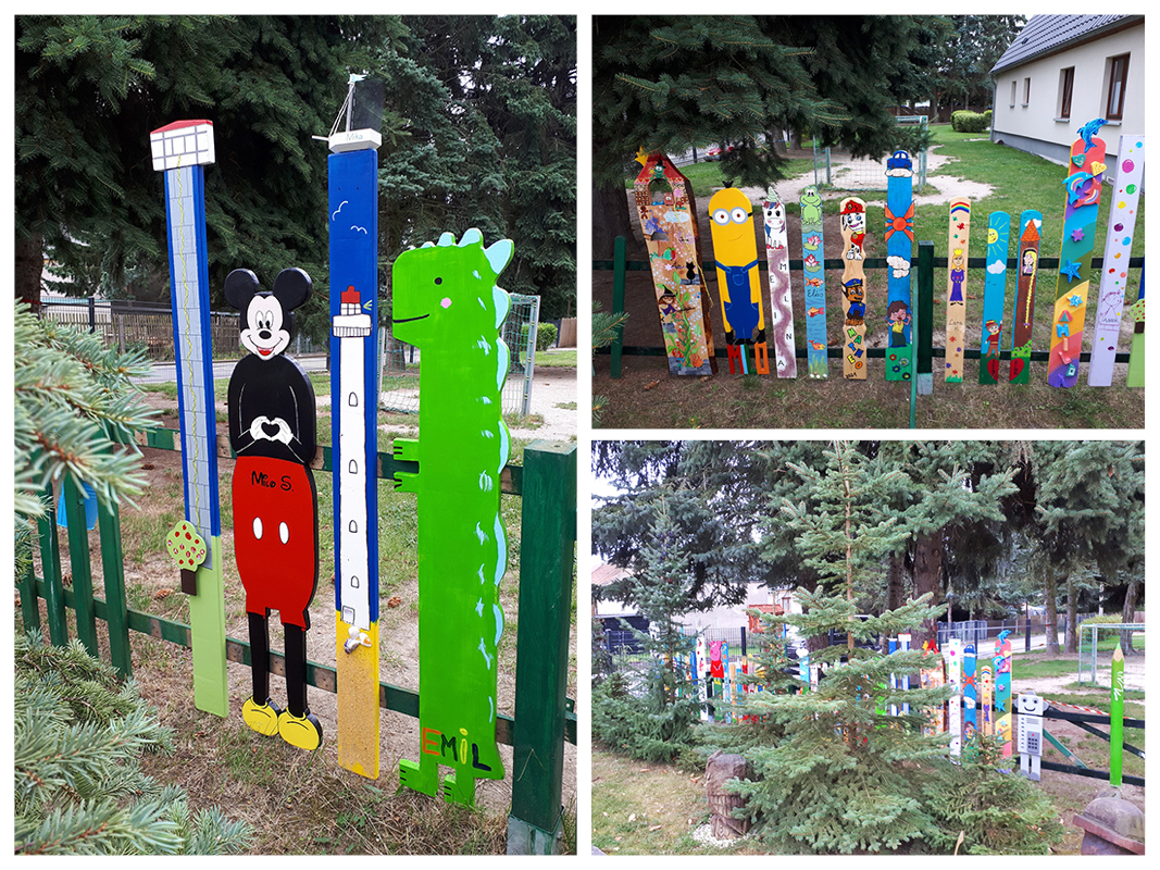 Das Ergebnis kann sich wirklich sehen lassen. "Es sind sensationelle Einzelstücke entstanden" berichtet die Kitaleiterin begeistert. "Eins schöner und einfallsreicher als das andere." Die Zaunlatten schmücken nun märchenhafte Motive und Rätsel bis hin zu wahren Kunstwerken. Mit dieser hohen Beteiligung und Kreativität habe sie gar nicht gerechnet und sei angenehm überrascht. Besonders stolz, so Kathrin Walter, seien die Kinder, die jeden Tag an "ihrem Zaun" vorbei gehen und darauf achten, dass auch nichts kaputt gehe.
