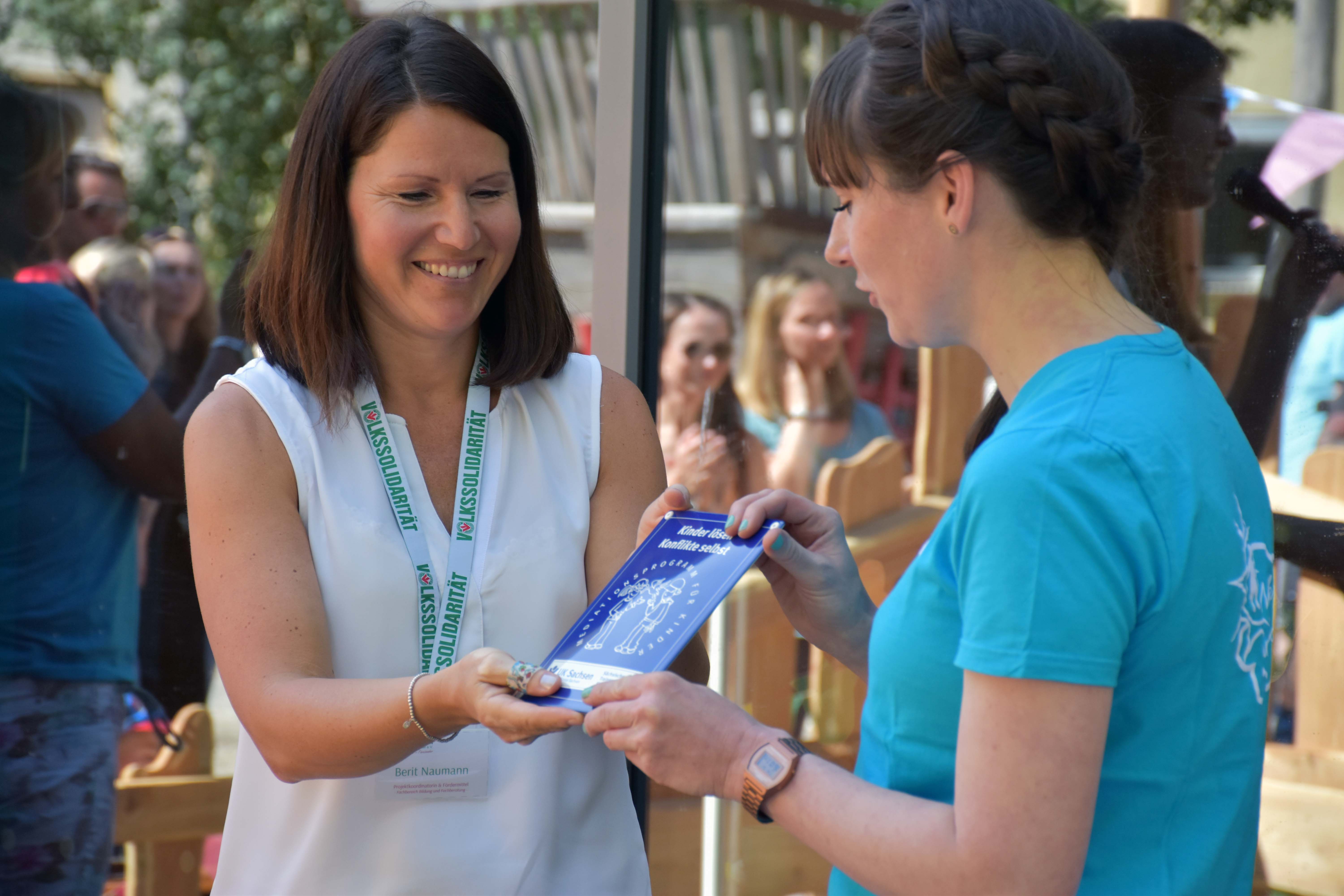 Unsere Kindertagesstätte "Wolkser Kinderland" in Leipzig / Liebertwolkwitz hat jetzt schwarz auf weiß bekommen, dass die Kinder bestens darauf vorbereitet sind, genau das zu schaffen. „Kinder lösen Konflikte selbst“, heißt das Zertifikat, welches unserer Einrichtung verliehen wurde. Die Übergabe der Plakette erfolgt im Rahmen des Sommerfests am Kindertag.